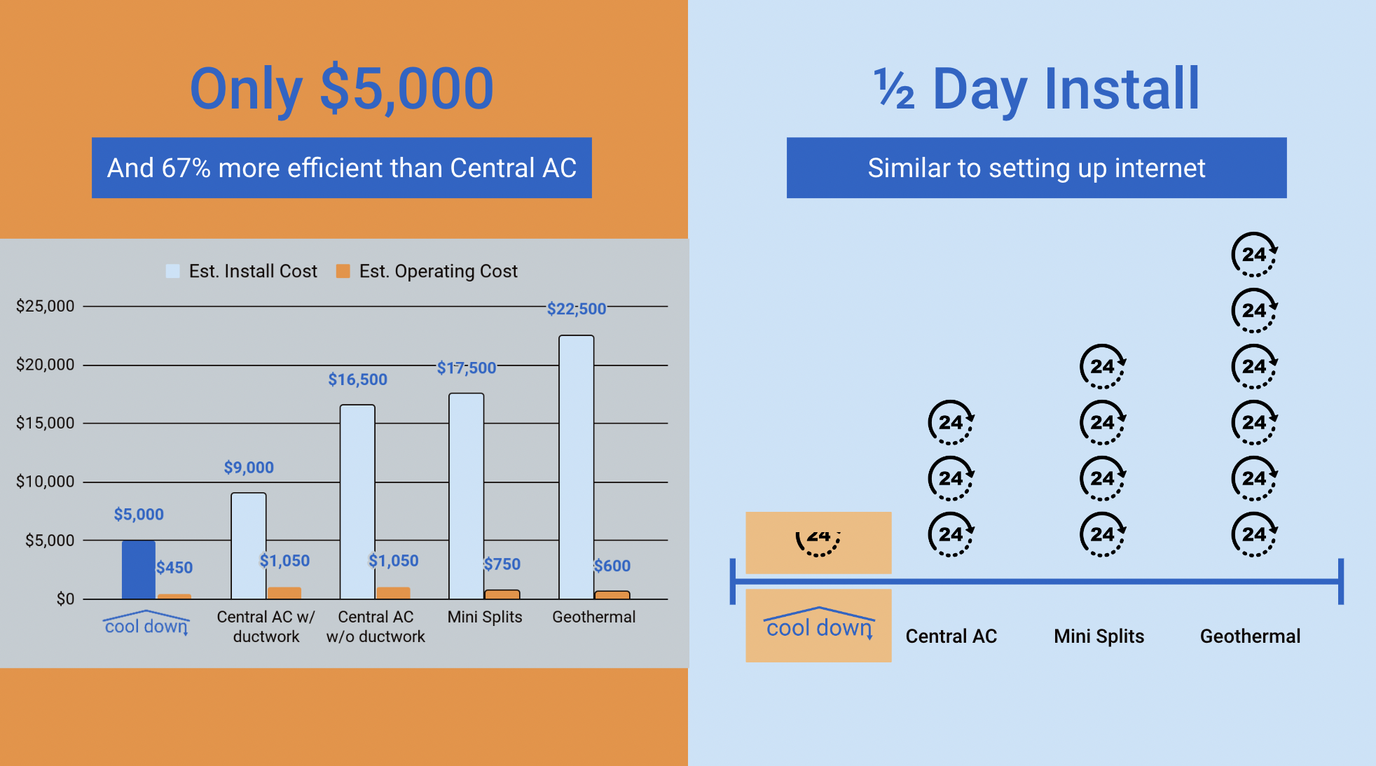 Note: If you already have Central AC you can still get Cool Down! Cool Down will reduce your central AC cooling costs by up to 67% a summer season.