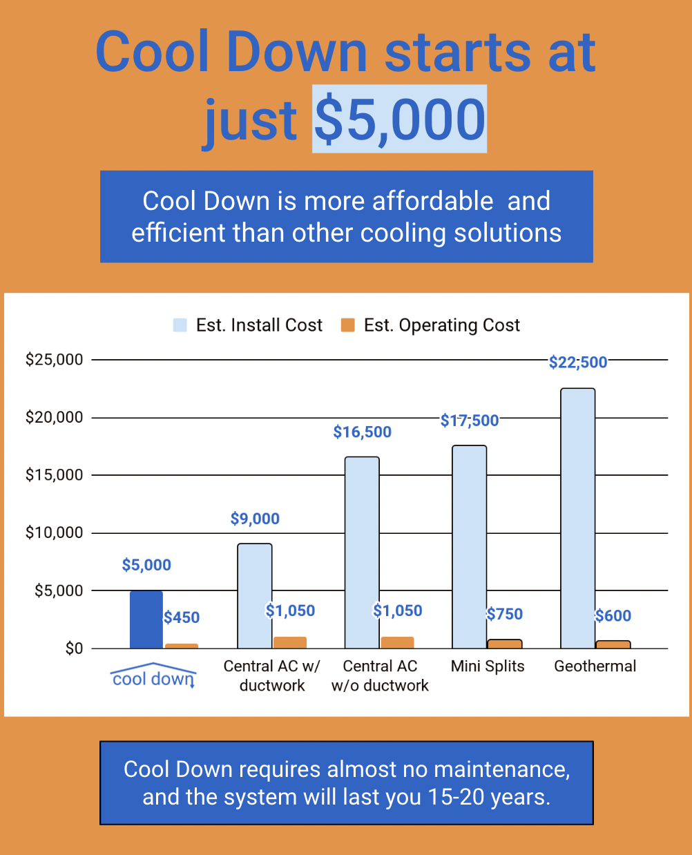 If your home doesn’t already have a cooling system, a Cool Down system can be a great way to get low-cost cooling at a fraction of the cost of a traditional central cooling system.